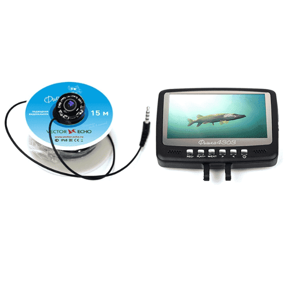 Приемное устройство выполнено в эргономичном корпусе и удобно располагается в руке, а так же предусмотрена фиксация на удилище. Оно оснащено ярким дисплеем с диагональю 4,3 дюйма, максимально комфортным для просмотра подводной обстановки. Монитор обеспечивает отличное качество картинки и комфортно просматривается при любом освещении.