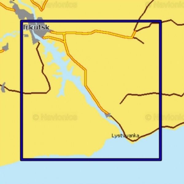 Зона покрытия карты: река Ангара от города Иркутск до озера Байкал.
