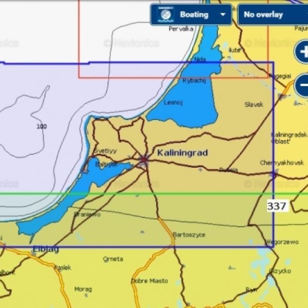 Зона покрытия карты: Куршский залив, Реки Дейма, Преголя, Матросовка, Тимбер, Ржевка, Шешупе, Немонин, Луговая, Тава, Полесский и Приморский каналы. Города Калининград, Гвардейск, Полесск, Черняховск, Советск, Зеленоградск.