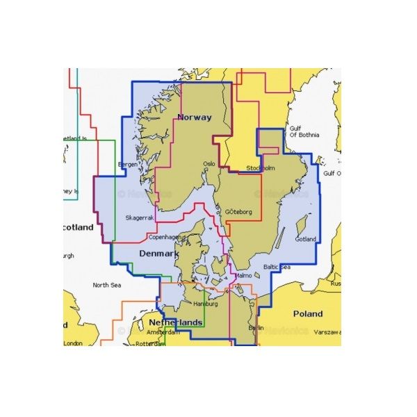 Дания, Германия (от Делфзейл в Нидерландах до Колобжег в Польше), Норвегия от Флеккенфьорд до Эланд в Швеции. Включает Скагеррак, Каттегат, Осло, Копенгаген, Гетеборг, Борнхольм, Зеландия, Лоллан, озера Финляндии и Германии.