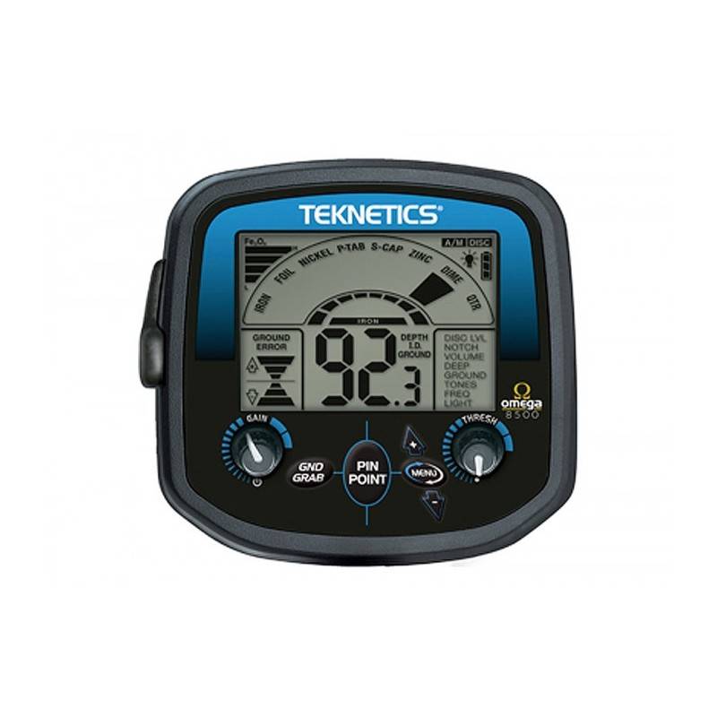 Лучшие качества металлоискателя Omega 8000 перешли к преемнику — металлодетектору Omega 8500, включая большой, удобный блок управления. Экран с регулируемой подсветкой на этом большом блоке поможет вам управлять настройками, определять глубину залегания цели, просматривать меню.
