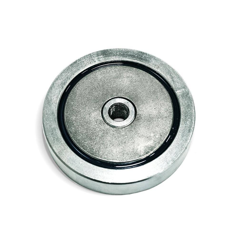 Односторонний поисковый магнит FROTON F200 представляет собой цельнометаллический фрезерованный корпус с вклеенным неодимовым магнитом из сплава NdFeB 48. Корпус покрыт защитным слоем цинка, а сам магнит – слоем никеля.