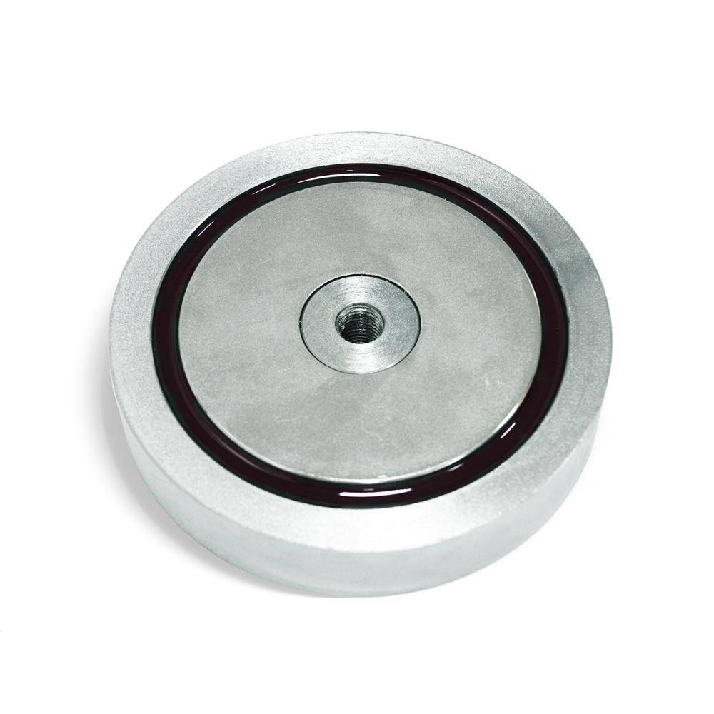 Односторонний поисковый магнит FROTON F600 представляет собой цельнометаллический фрезерованный корпус с вклеенным неодимовым магнитом из сплава NdFeB 48. Корпус покрыт защитным слоем цинка, а сам магнит – слоем никеля.