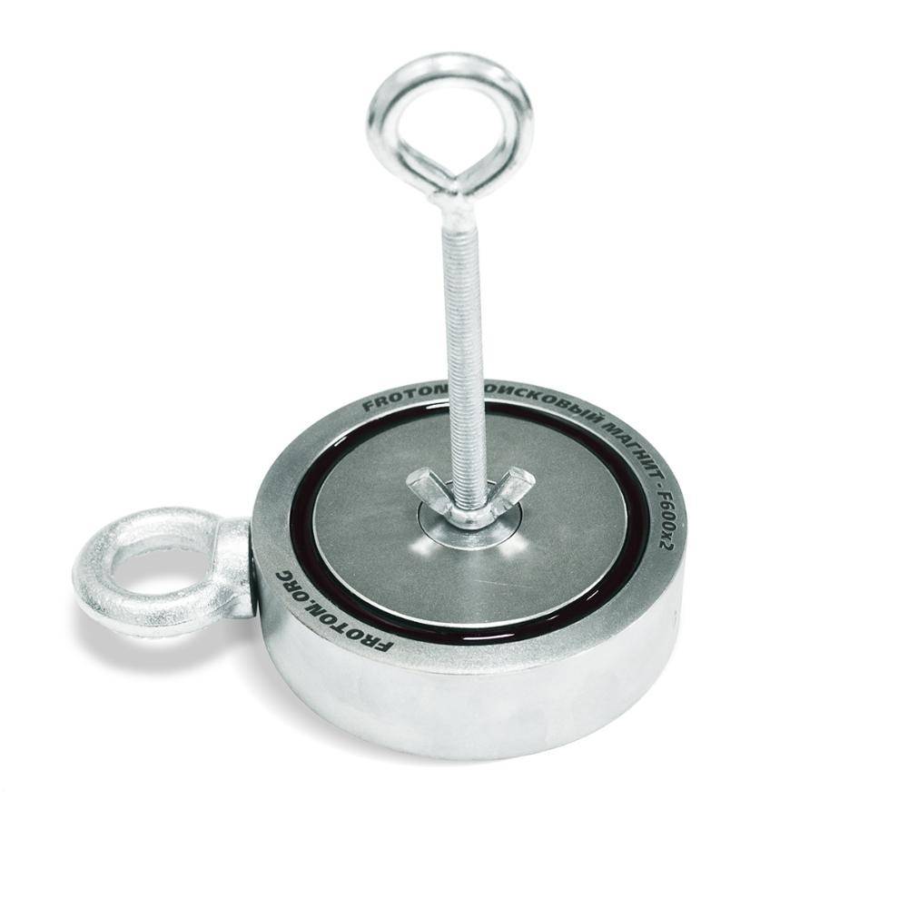 FROTON F600x2 предназначен для поиска и удержания ферромагнитных предметов. Использование магнита предусматривает подъем с удержанием ферромагнитных предметов из труднодоступных мест, отделение ферромагнитных предметов от других среди множества по типу сепаратора. FROTON F600x2 может использоваться как в быту, так и в промышленности.