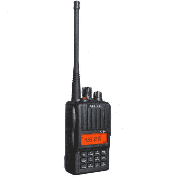 Радиостанция Аргут А-54 предназначена для работы в диапазоне 400-480 МГц. Максимальная мощность 5 Вт, предусмотрена возможность изменения выходной мощности для экономии заряда аккумулятора. Комплектуется Li-ion аккумулятором, емкостью 2300 мАч.