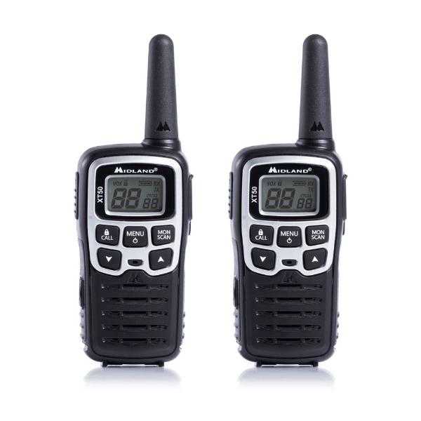 Набор радиостанций Midland XT50 включает в комплект две рации размером 53x100x27 мм. Отличие набора в четком приеме и передаче, ведь в его конструкции предусмотрен автоматический шумоподавитель. Модель использует для работы 24 канала PMR, запрограммированных заранее, и имеет мощность 0.5 Вт, которой достаточно для передачи сигнала в радиусе 6 км.