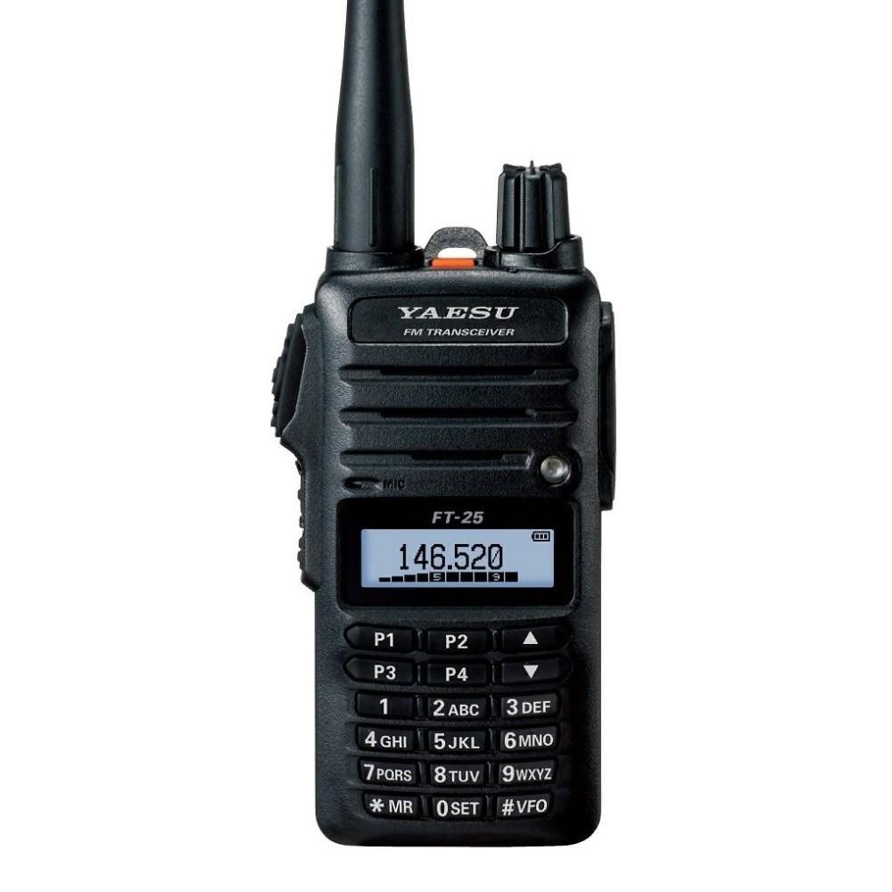 Компактная портативная рация Yaesu FT-25R отличается от многих других носимых раций большим светодиодным экраном и кнопочной клавиатурой, четыре клавиши можно запрограммировать для быстрого доступа. Yaesu FT-25Rработает в диапазоне VHF: 136–174 МГц и подходит для города и пересеченной местности. Выходная мощность имеет три уровня: 0,5 Вт, 2,5 Вт и 5 Вт. Рация комплектуется аккумулятором SBR-25LI Li-Ion 1950 мАч.