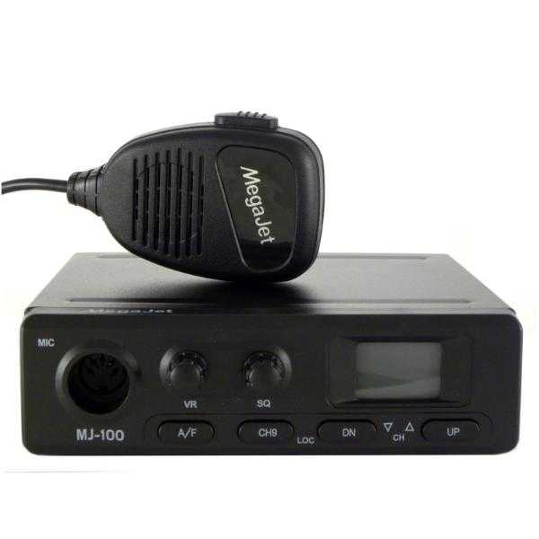 Небольшой ЖК дисплей MegaJet MJ-100 рации отображает номер канала, сетку частот, функции сканирования, приема/передачи, модуляцию.