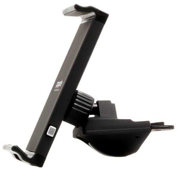 Применяется для планшетов с большой диагональю экрана . Держатели для планшетов с креплением в машину в CD слот становятся все более популярными, так как этот способ очень прост, удобен, планшет не закрывает обзор водителю и не мешает проигрыванию компакт-дисков в магнитоле.