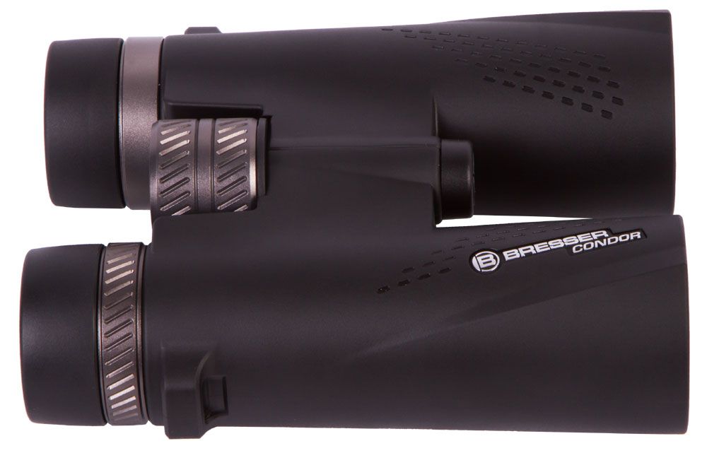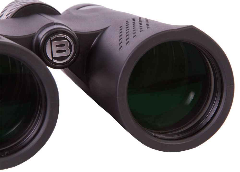 Корпус сделан из пластика, отдельные элементы конструкции – из металла. Корпус не пропускает воду и покрыт резиной для защиты от пыли и грязи. Нескользящее покрытие улучшает захват и придает биноклю более стильный вид. Внутреннее пространство бинокля заполнено инертным газом. Он препятствует выпадению конденсата на линзах, поэтому биноклю не страшны даже резкие перепады температуры.