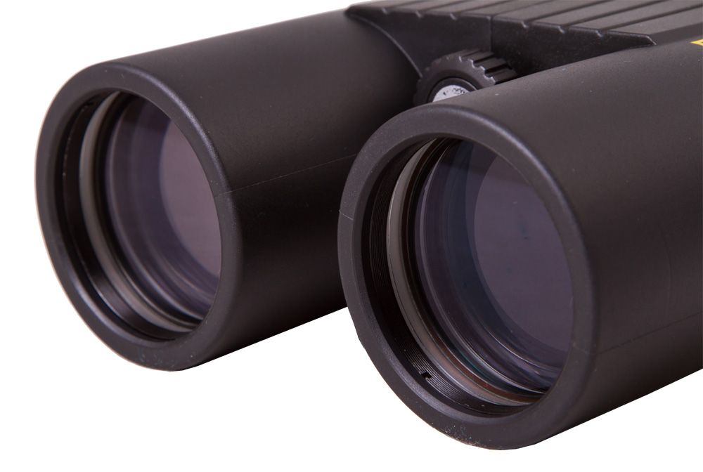 Корпус бинокля полностью защищен мягкой резиной. Она защищает оптическую конструкцию от ударов, падений и попадания влаги внутрь. Благодаря roof-призмам габариты бинокля значительно меньше, чем у аналогичных моделей с Porro-конструкцией.