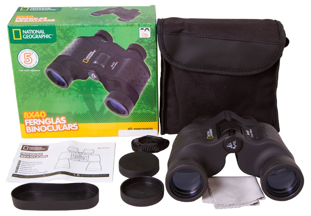 Бинокль Bresser National Geographic 8x40 – это комфорт для каждого. Богатый набор функциональных особенностей позволит настроить оптику под свои нужды и требования. Если вам удобнее использовать бинокль с очками, вы можете завернуть резиновые наглазники окуляров. Если требуется отрегулировать расстояние между оптическими трубами, бинокль позволит скорректировать межзрачковое расстояние. Настройка диоптрий – прекрасная возможность отложить очки и откорректировать картинку средствами бинокля. Отметим также наличие центральной фокусировки и возможность установки бинокля на штатив.