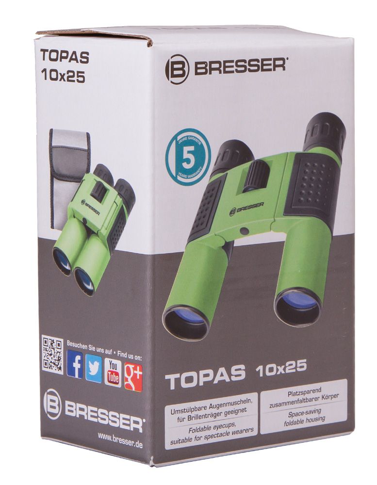 Компактный бинокль запоминающегося дизайна. Обладает 10-кратным увлечением и полностью просветленной оптикой. Прекрасно справляется с наблюдениями за удаленными объектами при хорошем освещении. Его можно использовать для наблюдений за дикой природой, на концертах или прогулках. Бинокль Bresser Topas 10x25 – гармоничное сочетание качества, надежности и удобства.