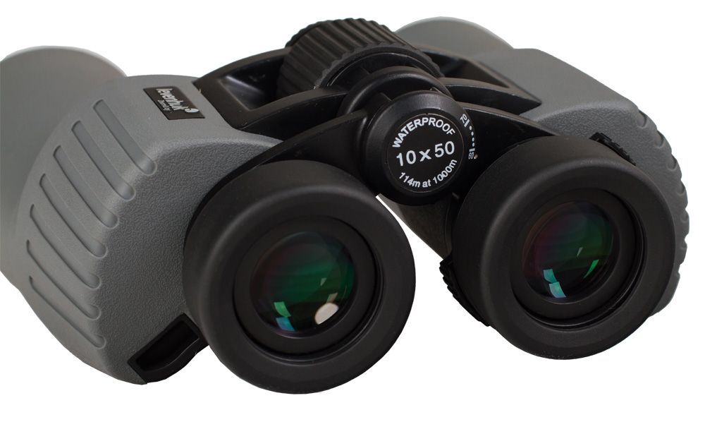 Благодаря герметичной конструкции пыль, грязь и влага не попадают внутрь прибора. Бинокль Levenhuk Sherman PLUS 10x50 полностью водонепроницаем. Корпус покрыт плотной светло-серой резиновой оболочкой, которая смягчает удары и обеспечивает надежный хват. Кроме того, она очень приятна на ощупь.