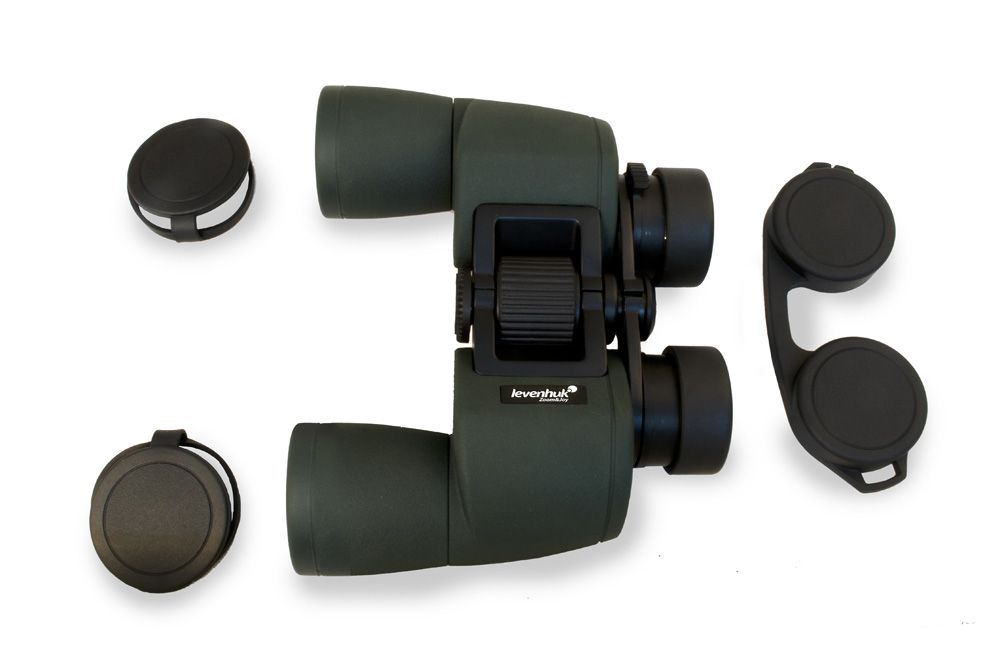 Бинокль изготовлен в герметичном корпусе – пыль, грязь и влага не попадают внутрь прибора. Плотное резиновое покрытие защитного цвета смягчает удары. Благодаря текстурной поверхности бинокль не выскальзывает из рук. В комплект входит широкий ремешок, так что бинокль можно повесить на шею.