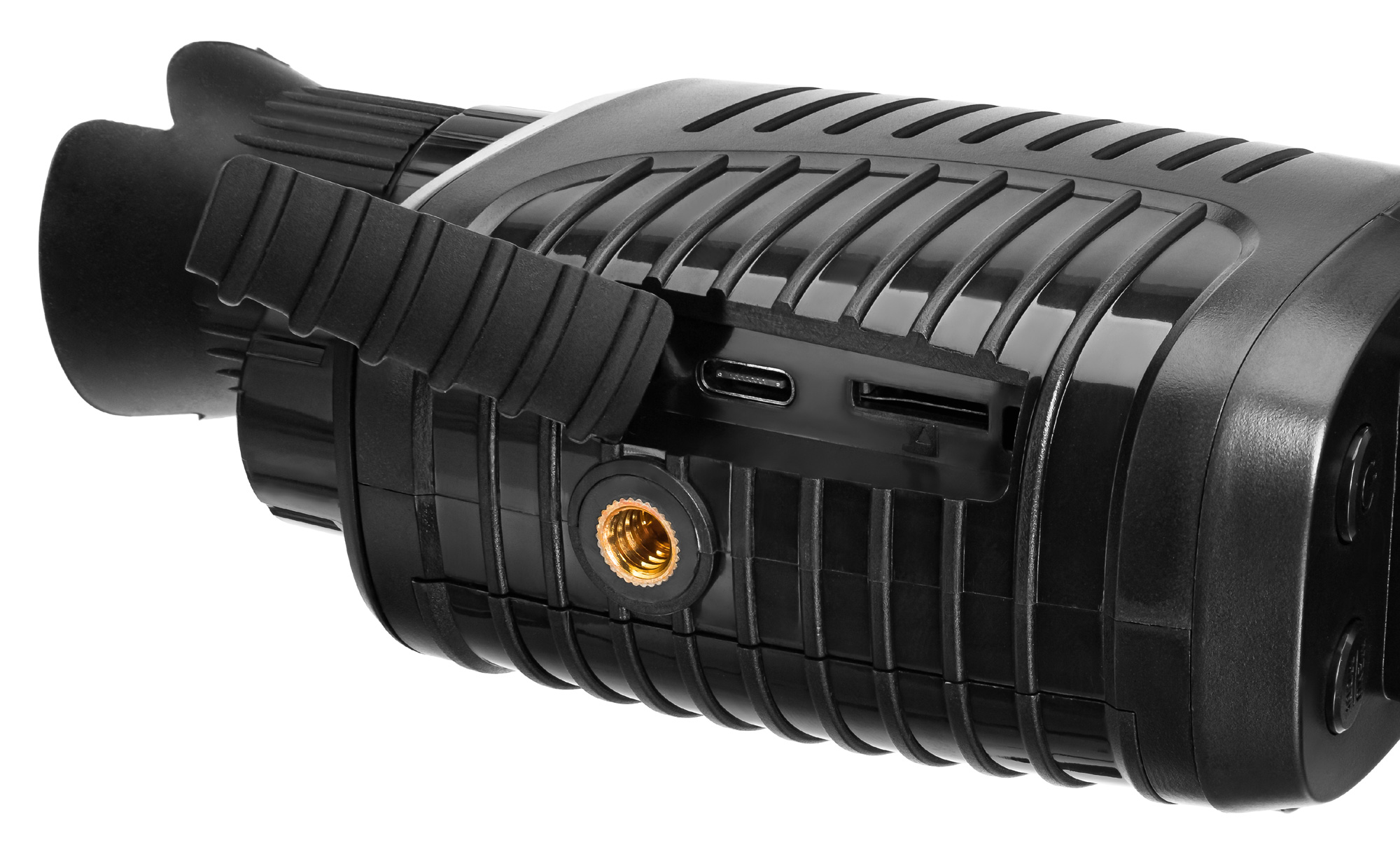 Днем и в сумерках вести наблюдения в монокуляр Levenhuk Atom Digital DNM50 можно на любой дистанции, ночью – в пределах 200 метров. Этого вполне достаточно для охранных наблюдений, поисковых работ, обустройства лагеря в походе. Встроенный видеорекордер открывает широкие возможности съемки в разрешении до 10M для фото и до 1920х1080 пикс для видео. Отснятые материалы сохраняются на карту памяти, причем поддерживаются карты большого объема – до 128 ГБ. Для передачи файлов на компьютер предусмотрен USB-слот. Удобно, что для долгих наблюдений и съемок можно установить прибор на штатив.