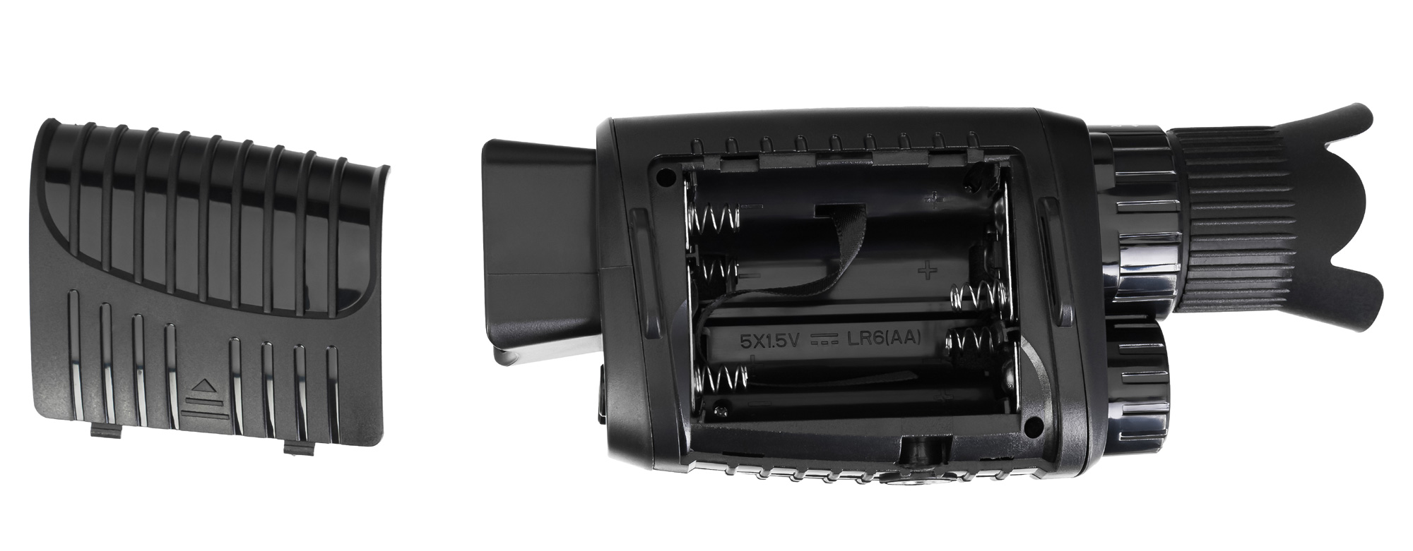 Изображение формируется качественной стеклянной оптикой и чувствительным CMOS-сенсором. Кольцо настройки фокуса удобно расположено в зоне объектива, кнопки управления ИК-подсветкой – на верхней панели прибора. Компактный и легкий монокуляр удобно взять с собой, чтобы быстро достать его и приступить к наблюдениям, когда возникнет необходимость. Питание осуществляется от обычных батареек, для экономии их заряда есть функция автоотключения. Время непрерывной работы в ночном режиме достигает 6 часов. Надежный корпус из высокопрочного ABS-пластика защищает прибор от повреждений в случае падения из рук.