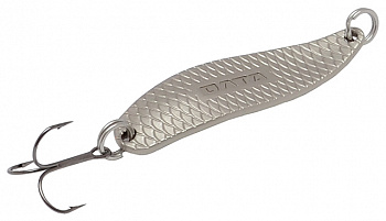 Блесна выполнена из цветного металла, благодаря чему не подвержена коррозии. Ее игра более легкая и привлекательная по сравнению с блеснами из железа. Матовое покрытие блесны, по мнению большинства опытных спиннингистов гораздо уловистее ярко-блестящих блесен и не так сильно настораживает привередливого хищника.