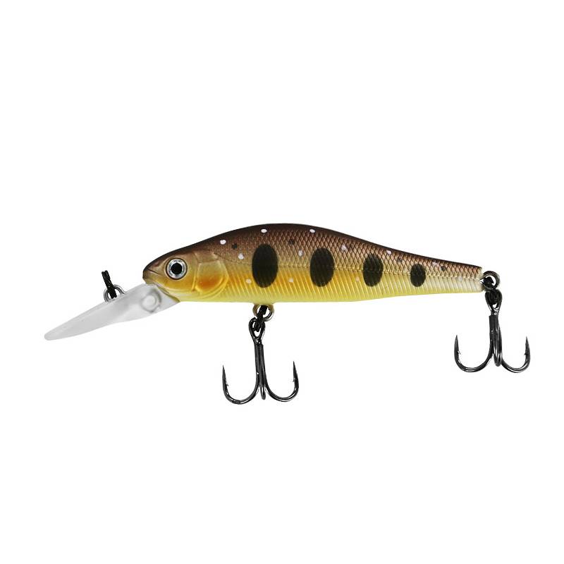 Воблер Tsuribito Jerkbait 50F-DR оснащен статичной огрузкой из двух металлических шариков, зафиксированных по обе стороны от крепления переднего тройника. Помимо балансировки приманки, огрузка выполняет функции низкочастотной погремушки, положительно влияет на аэродинамику. В качестве фурнитуры применяется пара тройников Овнер со стандартным креплением под брюшком и на хвосте. Стыковка с петлями выполняется с помощью прочных заводных колец.