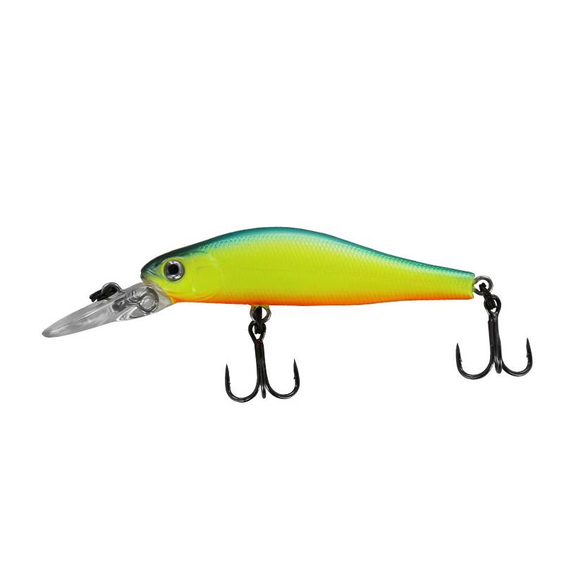 Воблер Tsuribito Jerkbait 50F-DR оснащен статичной огрузкой из двух металлических шариков, зафиксированных по обе стороны от крепления переднего тройника. Помимо балансировки приманки, огрузка выполняет функции низкочастотной погремушки, положительно влияет на аэродинамику. В качестве фурнитуры применяется пара тройников Овнер со стандартным креплением под брюшком и на хвосте. Стыковка с петлями выполняется с помощью прочных заводных колец.
