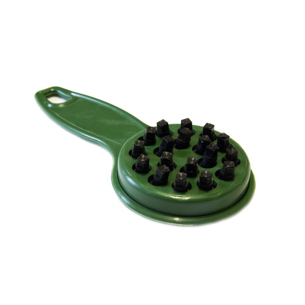 Очищает от чешуи любые виды рыбы независимо от их размера и величины чешуек. Благодаря подвижности зубцов рыбочистки, чешуйки не разлетаются по сторонам, остаются около тушки. Рыбочистка не подлежит коррозии, легко промывается, служит долго и надежно. Рыбочистку можно взять с собой на рыбалку, а также можно пользоваться дома.