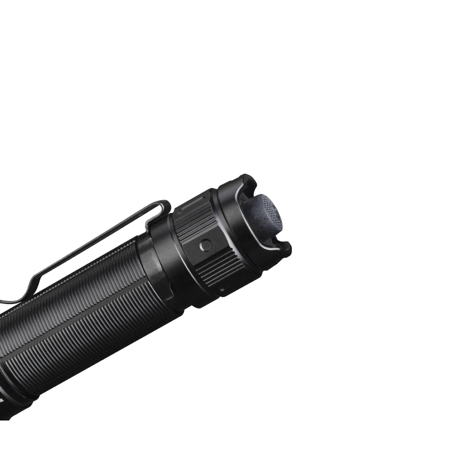 В модели предусмотрели цифровую стабилизацию тока, помогающую поддерживать постоянную яркость света. Также реализована функция предупреждения о низком заряде. Управлять осветительным устройством можно двумя кнопками, тактической в хвостовой части и функциональной сбоку.