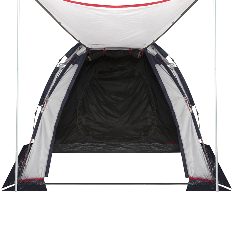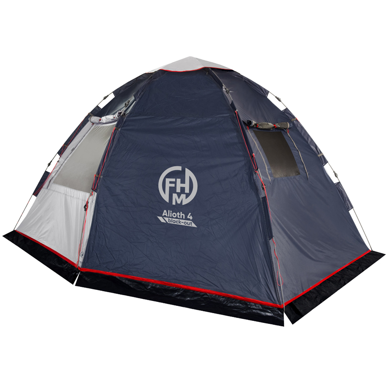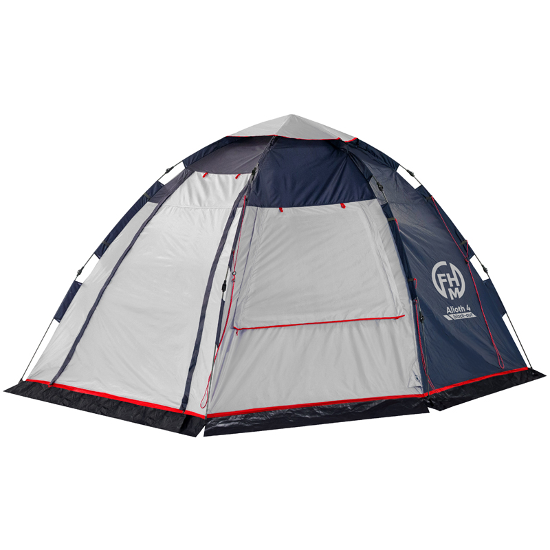 Большая кемпинговая палатка FHM Alioth 4 с полуавтоматическим каркасом представлена в новом цветовом дизайне. Лучшая в своем классе за счет практически прямых стен, высокого потолка и расширенного функционала. Устанавливается за считанные минуты, имеет отличную ветроустойчивость и большие окна для комфортного пребывания внутри в любую погоду. Изнутри внутренняя палатка не просвечивает, так как ткань палатки над спальным местом синего цвета с пропиткой черного цвета. Внутренняя палатка также черного цвета. Пол с усиленной герметичностью. На полу все углы продублированы тканью и швы проварены лентой. Правильно установленная палатка с зафиксированными оттяжками, растянутая колышками, с закрытыми окнами и входом пригодна для использования при силе ветра 6 (50 км/ч).