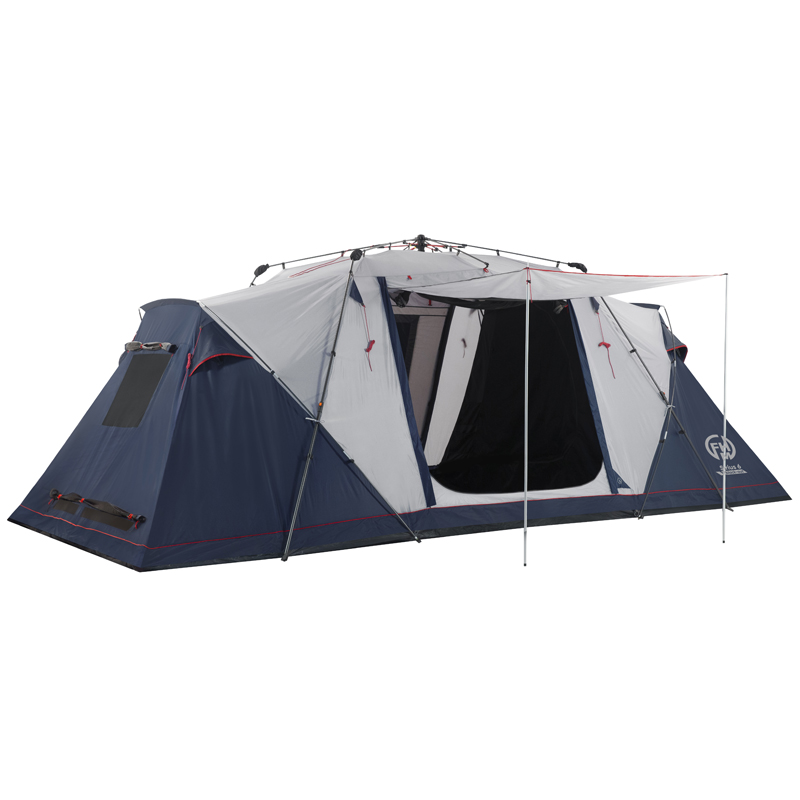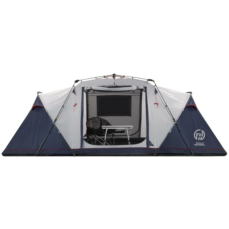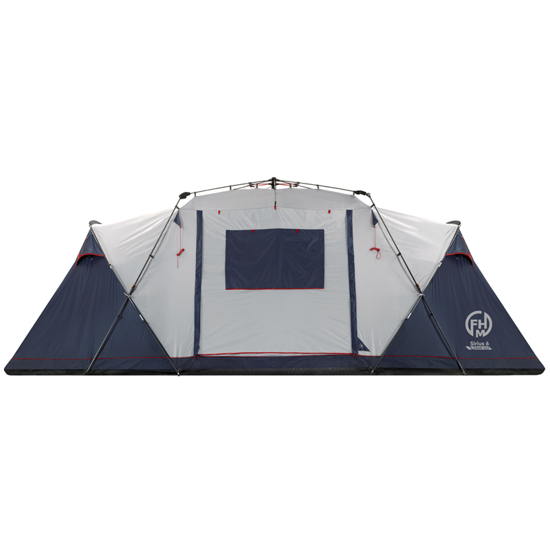 FHM Sirius 6- cамая большая кемпинговая палатка с полуавтоматическим каркасом и двумя независимыми комнатами, способными вместить до 6 человек. Между ними огромный тамбур для общения дружной компании, а также здесь можно хранить вещи или оборудовать кухню. Надежный каркас и герметичный пол — залог комфортного отдыха и долгих лет использования. Данную палатку, несмотря на ее размеры, можно поставить за считанные минуты.