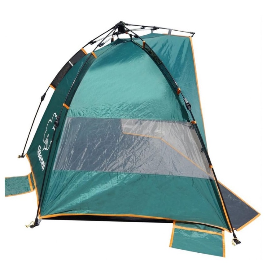 Тент GREENELL Эск 95464-325-00 может использоваться в качестве укрытия во время отдыха на пляже. Он выполнен из ткани Polyester 190Т PU 2000 с пропиткой, на 90% защищающей от ультрафиолета и препятствующей распространению огня. Для устойчивости конструкции предусмотрены специальные карманы размещения груза. Сетки на стенках обеспечивают эффективную вентиляцию. Водостойкость тента - 2000 мм/в.ст.
