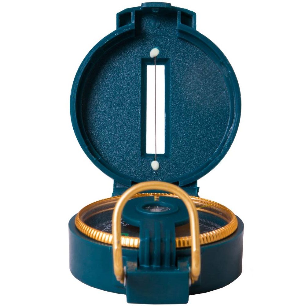 Компас состоит из циферблата, крышки с прицельной прорезью и увеличительной линзы. На лимб нанесены две шкалы, в милах* и градусах, и обозначения сторон света. В нижней части корпуса расположена скоба, с ее помощью компас удобно держать в руке.