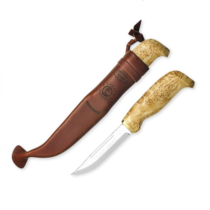 Нож Marttiini Big Lynx – легендарная модель, выполненная в подарочном варианте. Представленный нож станет вашим верным помощником на рыбалке, охоте или в походе. Клинок, выполненный из особо прочной нержавеющий, хромированной стали без проблем выдерживает высокие нагрузки и превосходно держит свою первоначальную остроту. Данная модель также уникальна тем, что она была произведена специально к юбилею компании, это вдвое удваивает её ценность. Форма клинка близка к классической. Рукоять ножа произведена из карельской березы. В комплекте с ножом идут кожаные ножны со специальной пластиковой вставкой внутри для усиления.