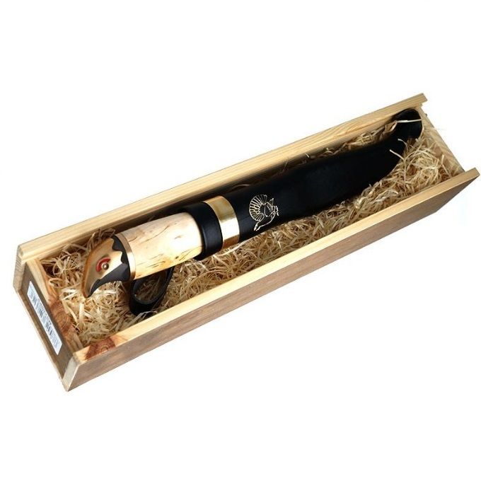 Нож Marttiini Wood Grouse Knife – это отличный подарок для поклонника холодного оружия. Острый, прочный клинок произведен из особой нержавеющий стали. Рукоять имеет изысканный дизайн и изготовлена из карельской березы. Бронзовый литой наконечник в форме головы глухаря делает эту модель по-настоящему уникальной. Нож поставляется в удобном, качественно пошитом чехле. Представленный нож идеально подойдет для повседневного использования.