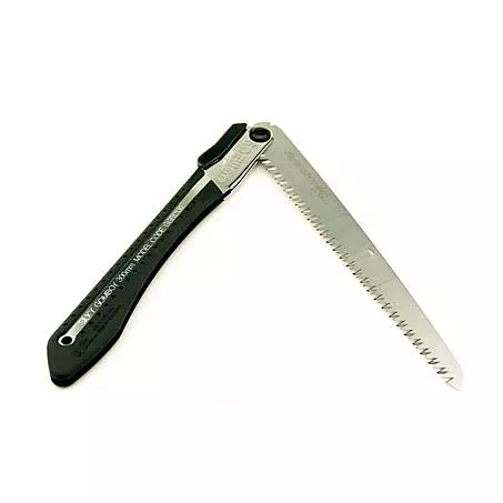 Пила складная Silky Saw GOMBOY 270 мм 10 зубьев на 30 мм чёрная рукоять 121-27 - прочный и компактный походный инструмент, для средних веток и стволов. В лесу Вы быстро напилите дров, на даче - уберёте ненужные ветки с садовых деревьев. Толщина полотна 0,7 мм., ширина полотна 40 мм.Конусная форма лезвия сводит на минимум трение и дает возможность сделать зуб пилы без разводки, это обеспечивает тонкий распил, что в свою очередь позволяет прилагать меньше усилий. Вы сможете пилить и в поперечном направлении, и в продольном, и по диагонали.Прочная и не скользящая, прорезиненная рукоять из алюминиевого сплава обладает фиксацией в двух положениях для удобства распила в труднодоступных местах. Зонная закалка полотна пилы позволяет там, где необходимо (в зоне зубьев) сохранять надолго остроту, а само полотно не закалённое и, поэтому, гибкое и не хрупкое.