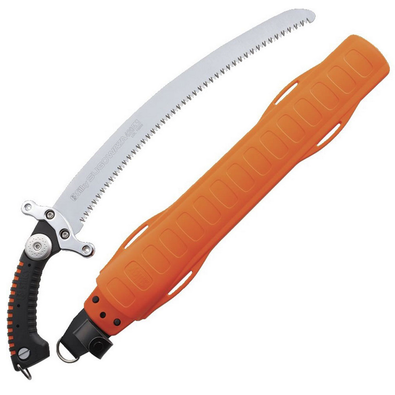 Походная легкая пила Silky Sugowaza имеет изогнутое лезвие. Исключительно подойдет самых сложных и тяжелых условий работы по резке больших ветвей и средних поленьев. Изогнутое полотно полотно имеет вогнутую кромку, которая обеспечивает большую скорость резания с меньшим усилием и имеет. Пила имеет 4 ряда зубьев - запатентованную технологию Silky 4-RETSUME.