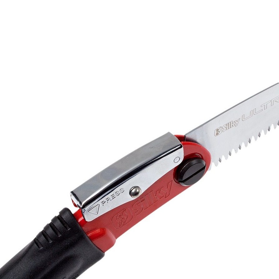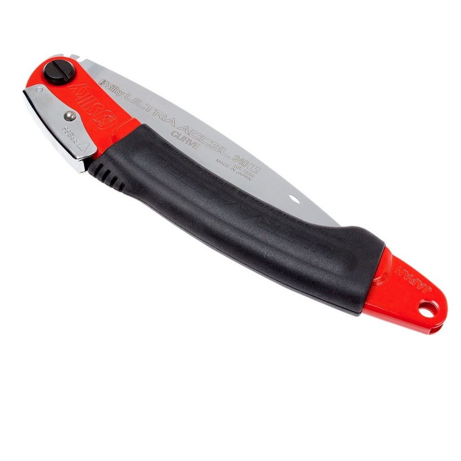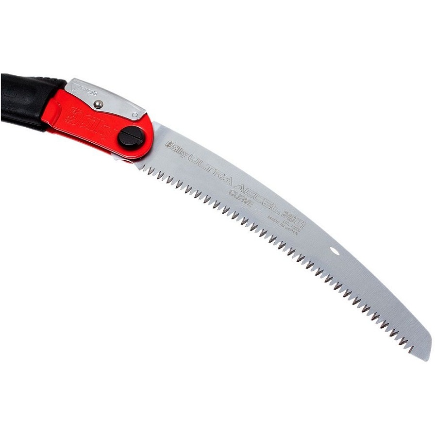 Легкая складная пила Silky Ultra Accel имеет изогнутое лезвие длиной 240 мм, которое обеспечивает большую скорость резания с меньшим усилием. Лезвие имеет возможность фиксироваться в 2-х положениях. Легкий и прочный корпус пилы выполнен из алюминия и в месте хвата прорезинен, что обеспечивает прочное и удобное удержание и гашение вибраций. Твердое многослойное хромирование что предохраняет пилу от коррозии.