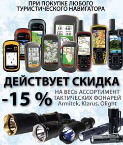 При покупке любого портативного навигатора скидка на тактические фонари Armytec, Olight и Klarus - 15%!