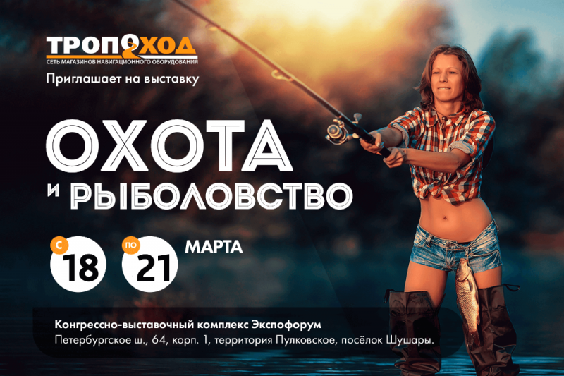 Всех любителей охоты, рыбалки, а также активного отдыха и путешествий, приглашаем на выставку "Охота и Рыболовство", которая пройдет с 18 по 21 марта в конгрессно-выставочном комплексе "Экспофорум", по адресу Петербургское ш., 64.